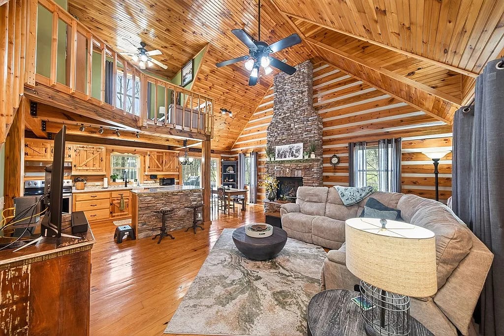 ๐ฒ Nestled on over 4 acres with a classic cabin feel, soaring ceilings, and a massive stone fireplace, this home nails the cozy retreat aesthetic that consistently converts bookings. The walkout basement with separate living space opens the door for dual-income potential or premium group stays.