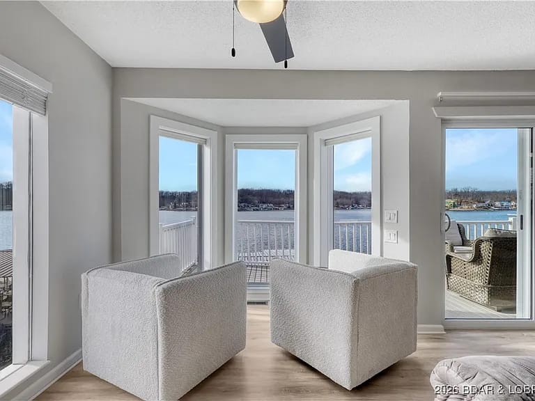 Looking for Lakefront that checks all the boxes? Look no further! Fully furnished, turn-key 3-bedroom, 4-bath home with stunning views, deep water, & cove protection in desirable Lick Branch Cove at the 5MM, an excellent location by land & water. Blacktop access parking. The open floor plan features walls of windows with new main-level windows & coverings, new light fixtures, & freshly painted interior. Electric fireplaces on each level add warmth & ambiance. The spacious primary suite includes a private balcony & fireplace. Lower-level family room with wet bar offers great entertaining space. Outdoor living shines with low-maintenance composite decking, both open & covered, plus sunscreens for added comfort. Enjoy very few steps to the 3-slip dock with wet steps, remote boat lift, PWC slip, large swim platform, & slide. Additional highlights include metal roof, all new mattresses, Blink cameras, seamless insulated vinyl siding, newer patio doors, newer LVP flooring, extra storage, foam-insulated crawl space, & Electric Car Charging. Ideal Lake of the Ozarks vacation home, full-time residence, or income-producing investment. 2022 Lowe 270SS 300HP Merc Tritoon Boat for extra $.