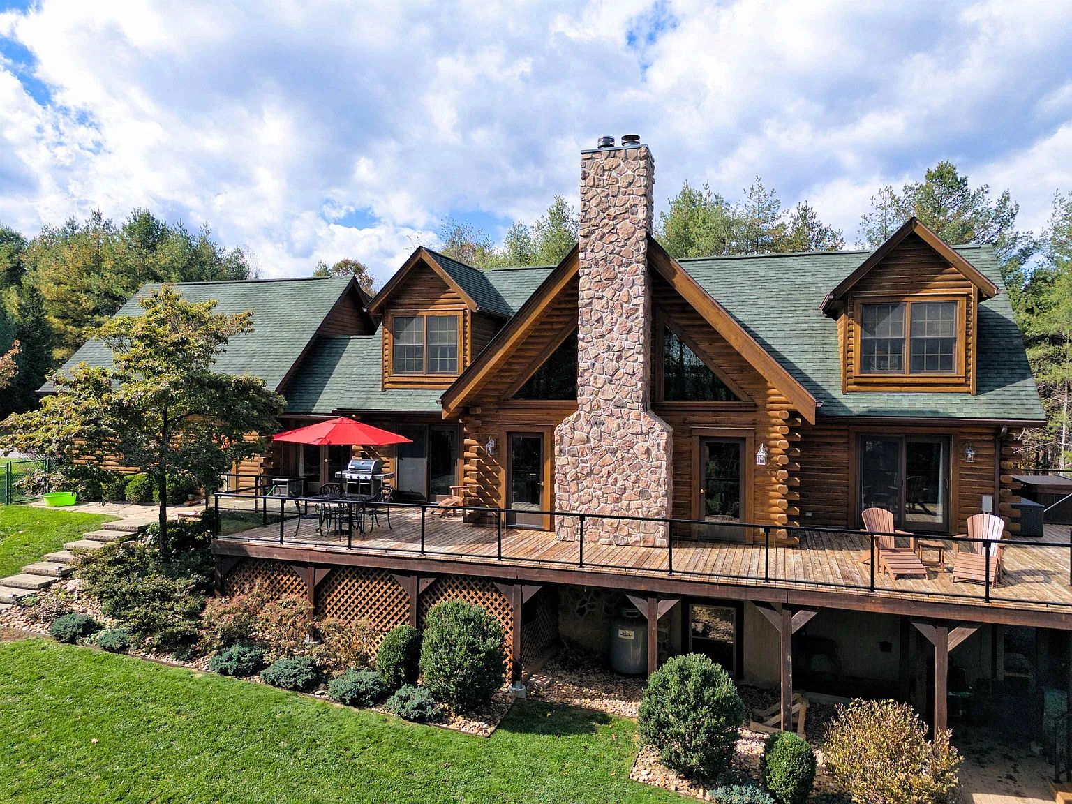 LIVE like youβre on VACATION every day in this stunning 4-bedroom, 4-bath log home located just minutes from Town of Floyd! This meticulously built home features solid HW floors throughout w/ solid wood interior doors. A dramatic wall of windows fills the living room w/ natural light, while 12,000 KW off-grid solar system efficiently powers most of home. Solar is located in the new, 2nd detached garage for additional space. The kitchen offers granite countertops, a walk-in pantry w/ breakfast bar. The dining area opens to spacious deck, also accessible from the living room & main-level primary suite w/ luxurious updated primary bathroom! The bonus room over garage includes full bath & separate entrance, perfect for a 4th bedroom, guest suite, home office or Airbnb rental. The finished walk-out basement features family room w/ wood stove, additional flex room & beautifully tiled bathroom w/ shower & vessel sink. Peaceful surroundings & a fantastic property!!!