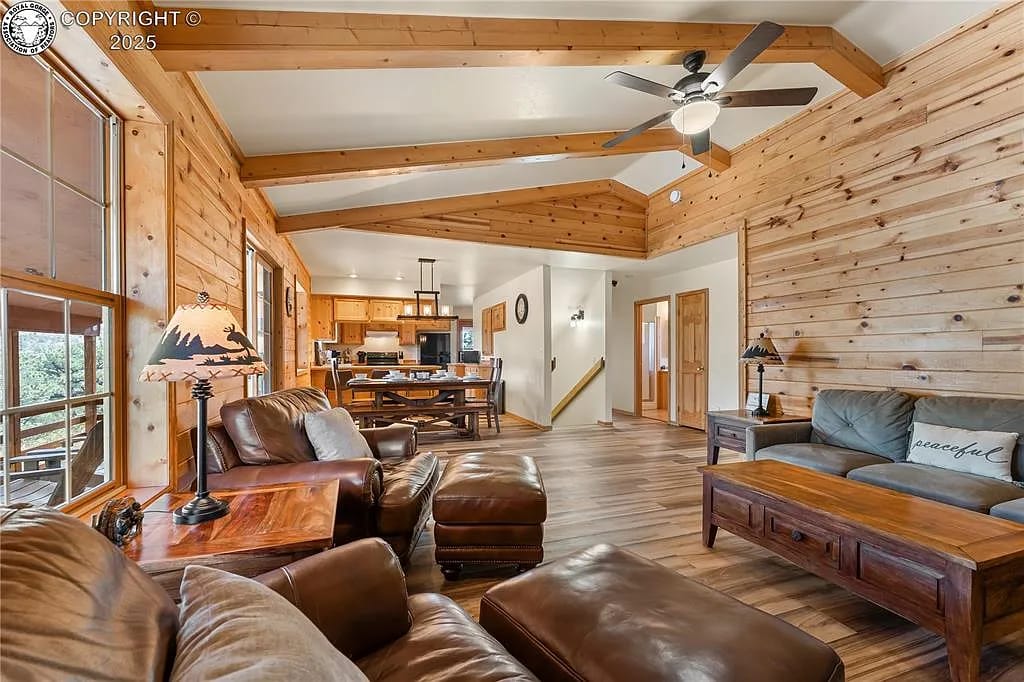 Escape to the mountains in this beautifully maintained, move-in-ready home tucked away on nearly 3 acres of forested land. Surrounded by tall pines and mountain air, this inviting alpine cabin is the perfect place to unwind or generate rental income right away. Step inside and be welcomed by soaring ceilings, exposed timber beams, and rich wood interiors that create a warm, rustic atmosphere. The open floor plan includes a spacious living area with a fireplace, a functional kitchen with classic pine cabinets and a breakfast bar, plus an easy flow into the dining area which is ideal for gathering with friends or family. This thoughtfully designed home offers two comfortable bedrooms and a full bath on the main floor, a very large 3rd bedroom and 3/4 bath in the basement along with a private office for remote work or creative space. You will also delight in a finished garage ready for games or gear storage. Everything you need is here, including quality furnishings. You can start enjoying the space or hosting guests immediately. Take in the views and fresh mountain air from the covered balcony, where mornings begin with birdsong and evenings wind down under the stars. A private well, 1,000-gallon cistern, and year-round road access make it practical for full-time living or weekend escapes. Whether you're looking for your own quiet sanctuary or a proven short-term rental, this turnkey mountain property offers the best of both worlds. Everything in the house stays!! All you need to do is move in!